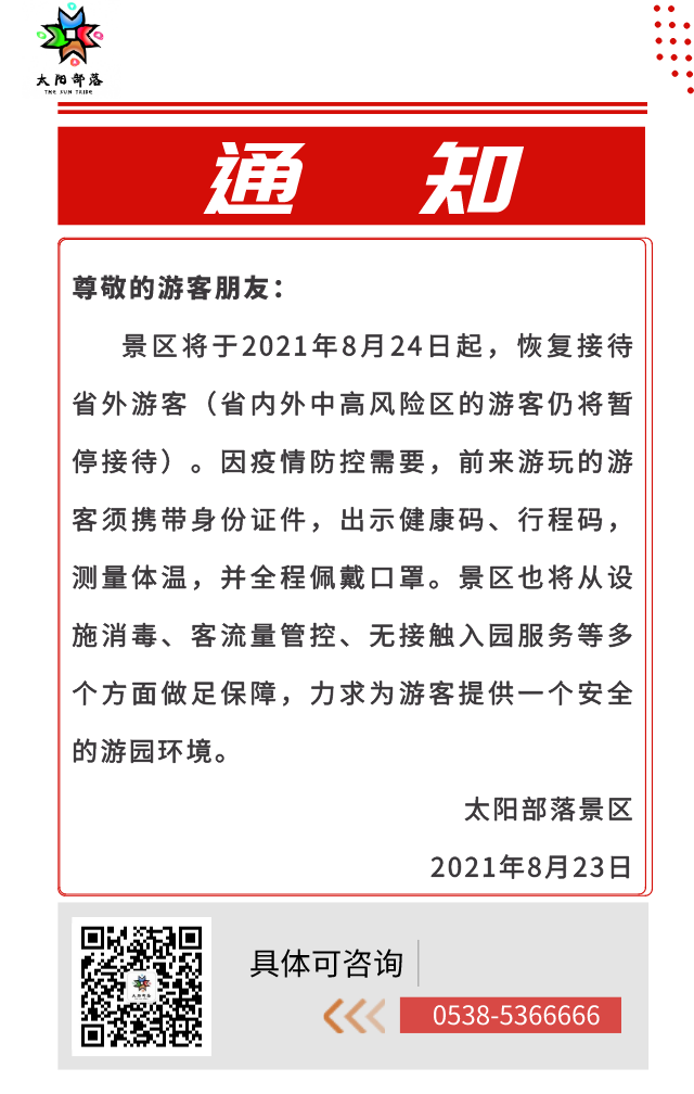 太陽部落將于8月24日起恢復(fù)接待省外游客(中高風(fēng)險(xiǎn)區(qū)仍暫停接待)